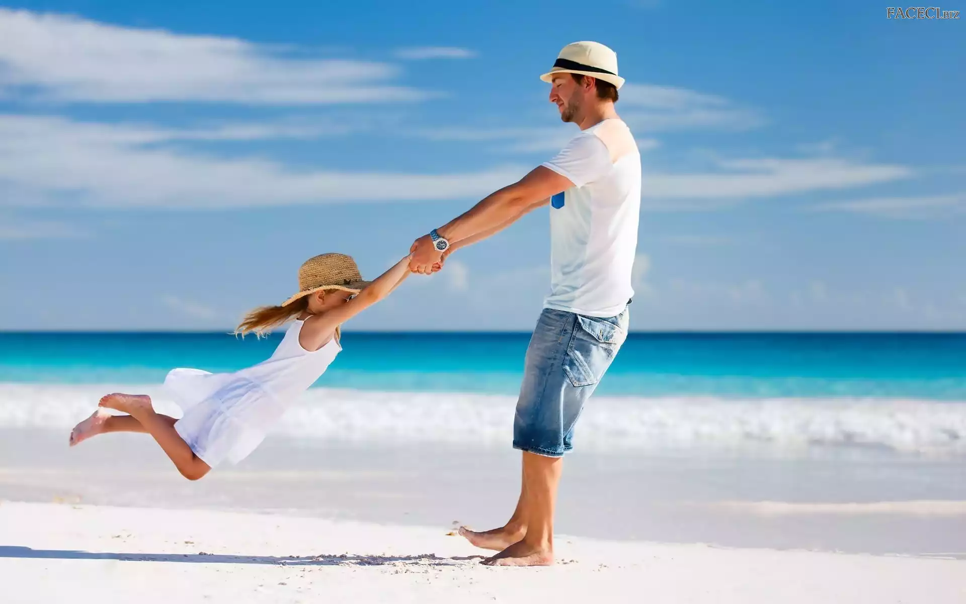 Ojciec, Morze, Córka, Zabawa - faceci.biz